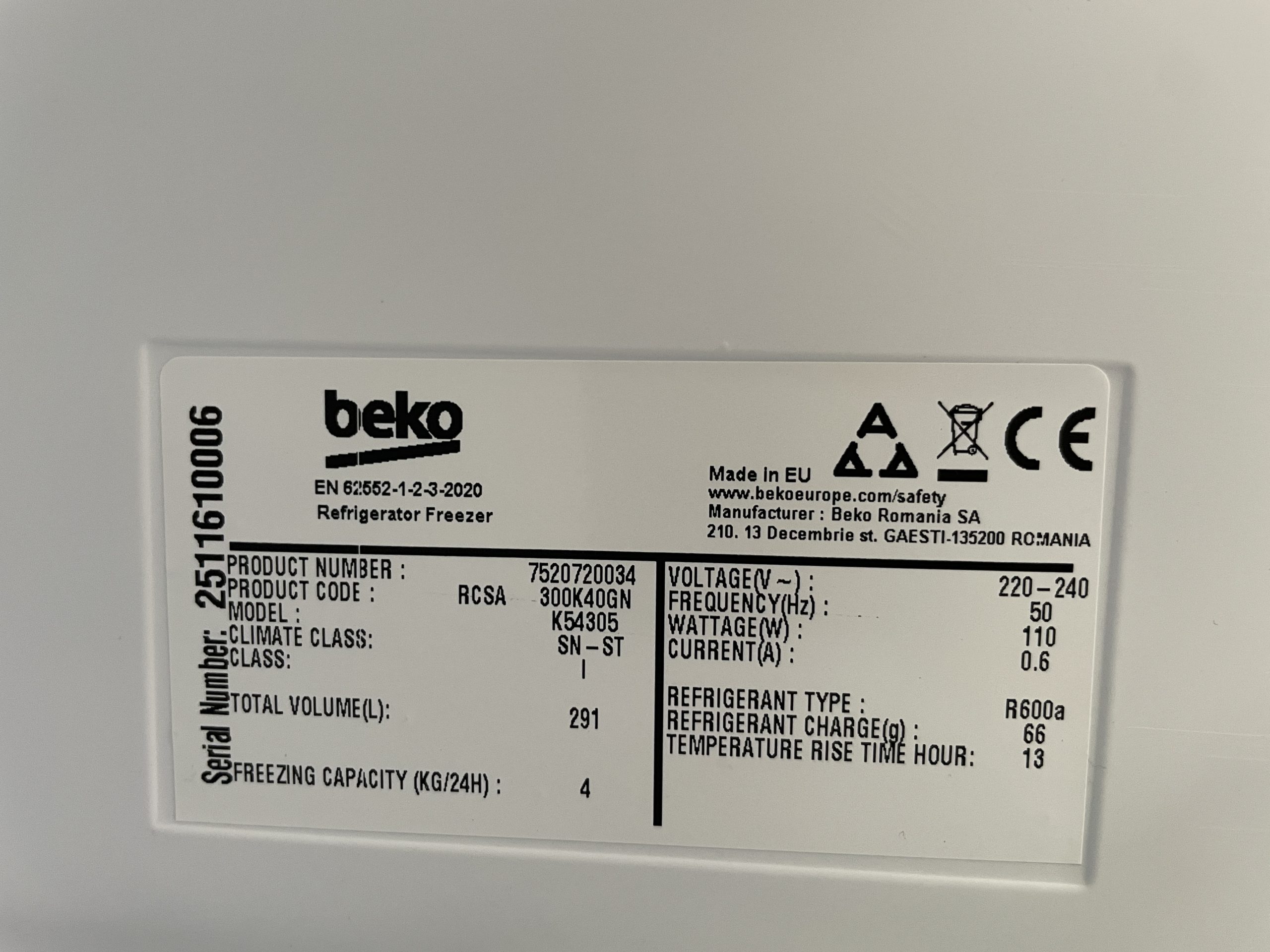 No frost freezer: SI